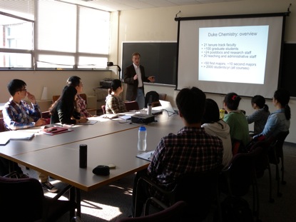 杜克大学化学系系主任Stephen Craig给参观的同学们介绍化学系的历史和发展前景