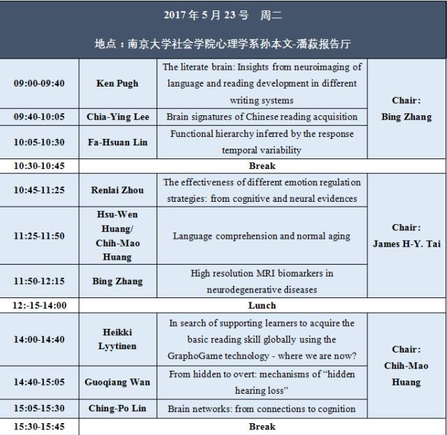 为进一步推动中国认知神经科学的研究,促进心理学、生理学、医学、认知科学、计算机科学等领域专业人员的学术交流与合作,“脑、语言和认知国际研讨会”将于5月22-24日在南京举行。本次论坛的主题是“脑、语言和认知”。论坛的具体事项如下: