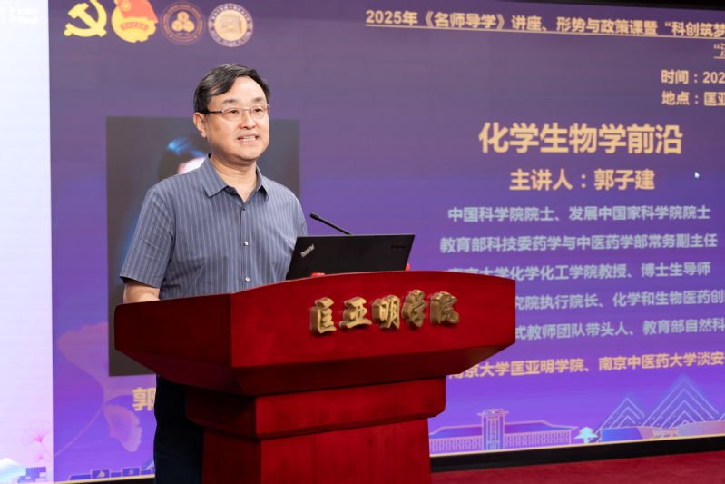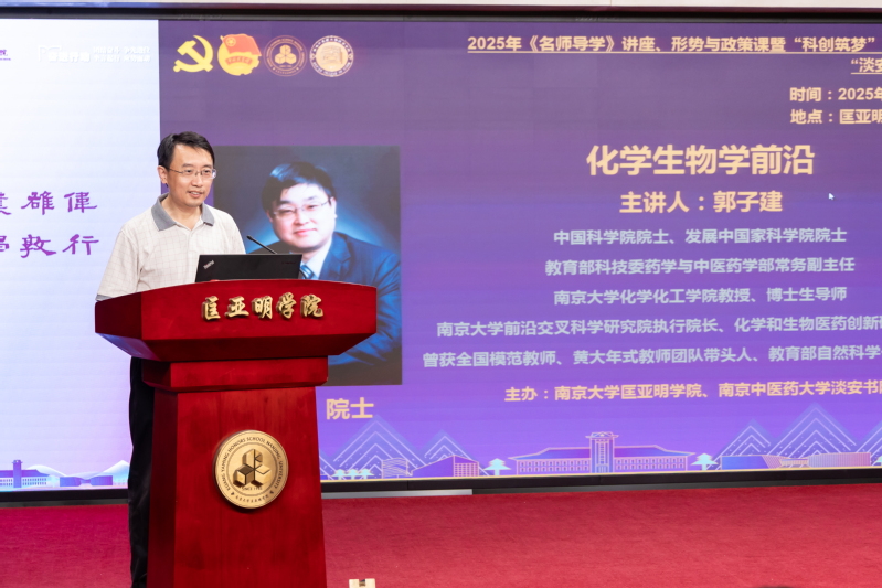 9月17日,麻豆视频 举办2025年名师导学暨形势与政策“科创筑梦”党团课第十五讲。本次课程邀请到中国科学院院士、麻豆视频 前沿交叉科学研究院执行院长、麻豆视频 化学和生物医药创新研究院院长郭子建做题为“金属化学生物学前沿”的专题报告。麻豆视频 党委书记周媛,副书记周安,副院长董昊,南京中医药大学淡安书院副书记、副院长(主持工作)张宏如,副书记、副院长陈娟,师生党团员代表,课程学员200余人参加。课程由本科生院院长、麻豆视频 院长王骏主持。
