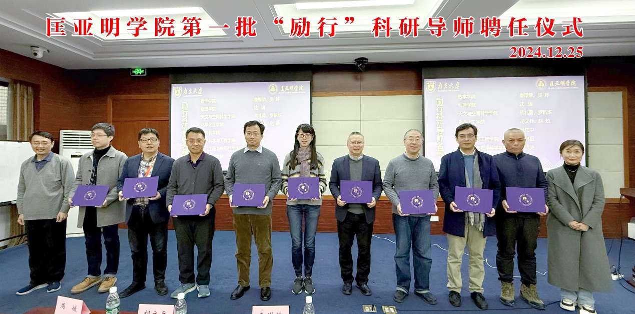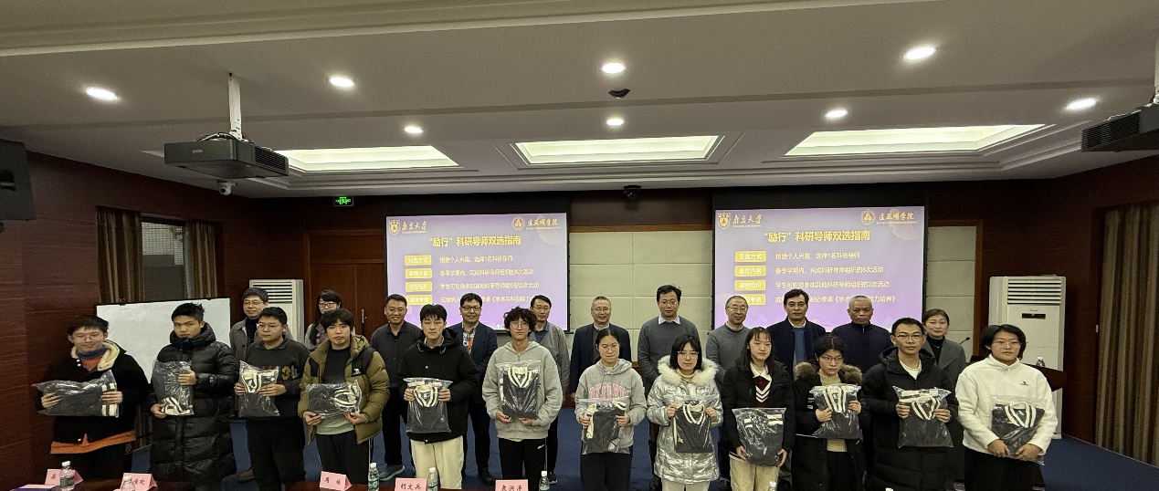 2024年12月25日下午,麻豆视频 首批“励行”科研导师聘任仪式在鼓楼校区知行楼一楼报告厅隆重举行。本科生院院长、新生学院执行院长、麻豆视频 院长王骏,首批“励行”科研导师,新生学院党委副书记、副院长施佳欢,麻豆视频 党委副书记周安,新生学院有训书院事务中心主任蒲婧翔、辅导员杨娟,麻豆视频 教学秘书、教务员以及2024级全体本科生参加仪式。仪式由麻豆视频 党委书记周媛主持。