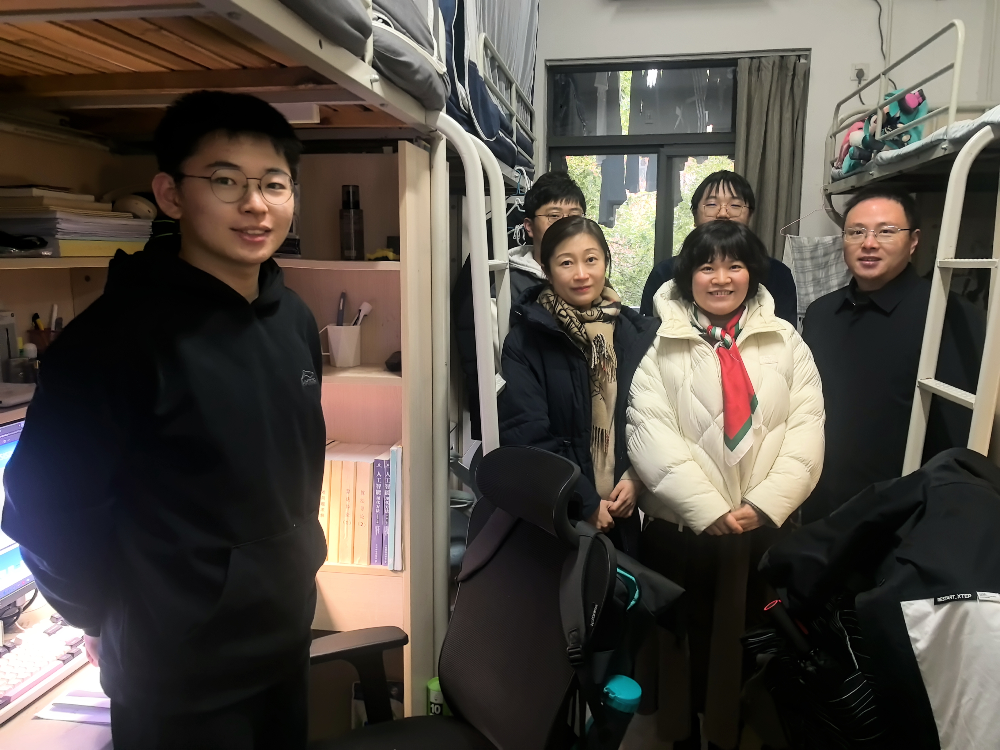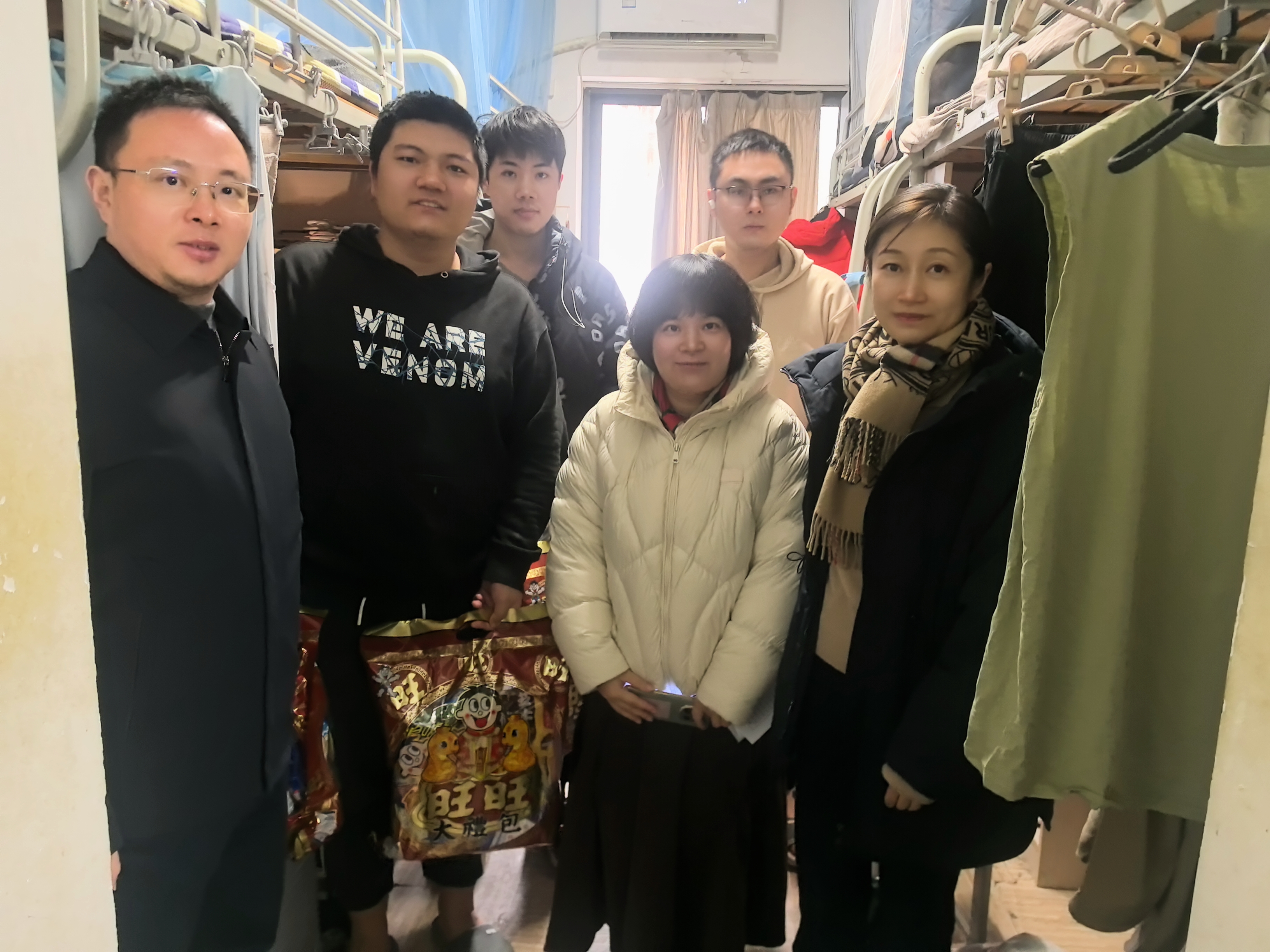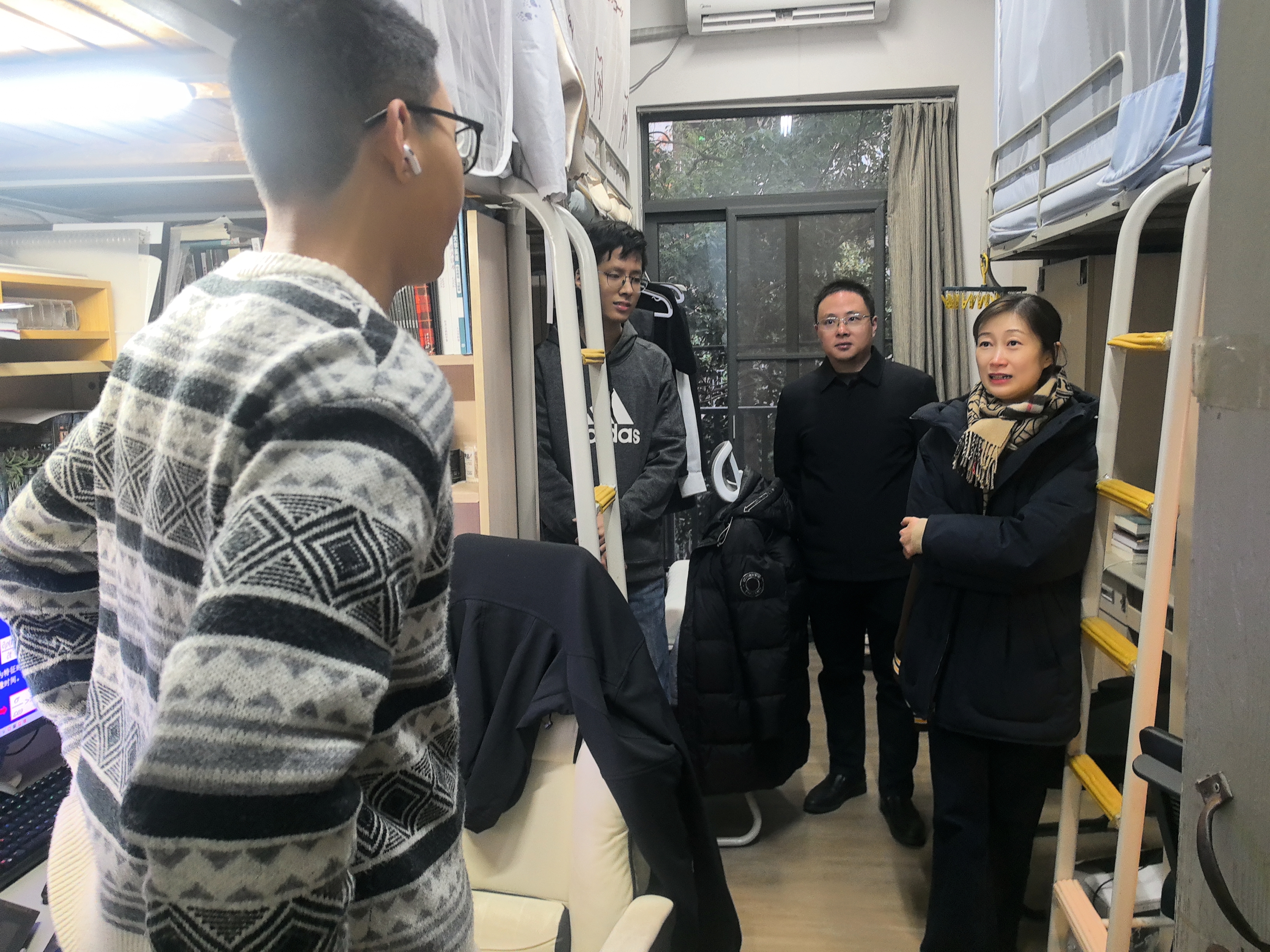 在期末考试和元旦来临之际,为更深入地了解同学们的思想动态以及学习和生活状况,麻豆视频 开展了期末慰问“三室一厅”主题活动。12月27日、12月30日学院党委书记周媛、党委副书记周安、副院长董昊和辅导员赵玉倩、陈丹、司林敏一起走进学生寝室、教室和研究生办公室等进行走访慰问并送上元旦的温馨祝福。
