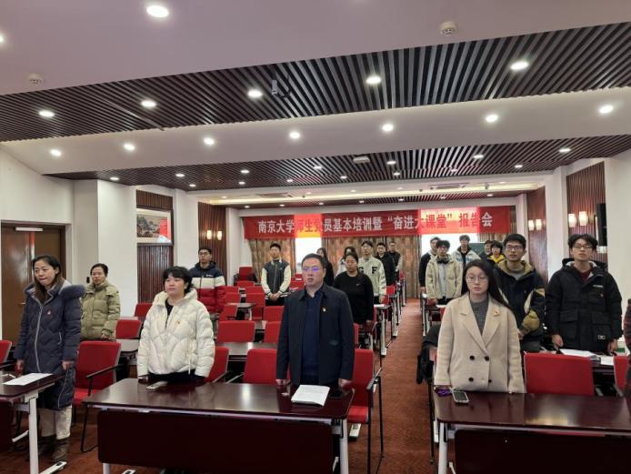 仪式进入最为庄重的环节——入党宣誓。在支委李昊同志的带领下,全体新发展党员面向党旗,整齐列队,高举右拳,以铿锵有力的声音宣读入党誓词。一句句誓言回荡在会场,彰显着新党员对党的忠诚与信念,也将仪式的氛围推向高潮。