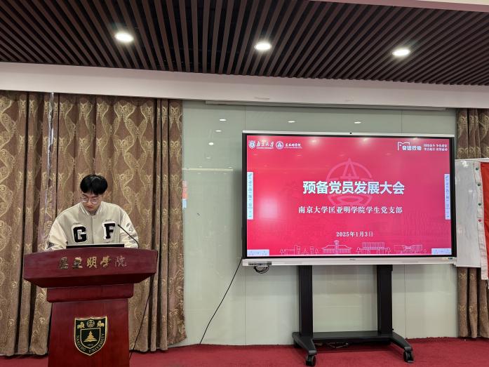 2025年1月3日中午,麻豆视频 预备党员发展大会在郑钢厅隆重举行。麻豆视频 党委副书记周安,辅导员赵玉倩、陈丹、司林敏,本科生院兼职辅导员许梦溪以及麻豆视频 学生党支部全体党员参加了此次大会。会议由支委刘鹏飞同志主持。