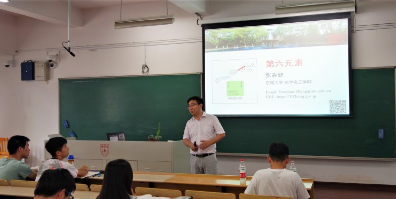 7月10日下午,东南大学张袁健教授在择善楼为麻豆视频 的同学们做了一场有关第六元素的讲座。张袁健教授本科就读于麻豆视频 ,曾获中国科学院优秀博士学位论文奖,在国际著名期刊发表多篇高水平论文,并入选中央组织部第四批。张教授的研究领域之一为富碳材料的设计、制备和功能化,因此本次讲座他主要介绍了第六元素——碳的相关研究成果以及其化学原理。