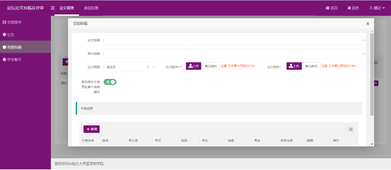3. 在网站上注册和提交论文时请注意完善个人信息并按要求填写相关信息。