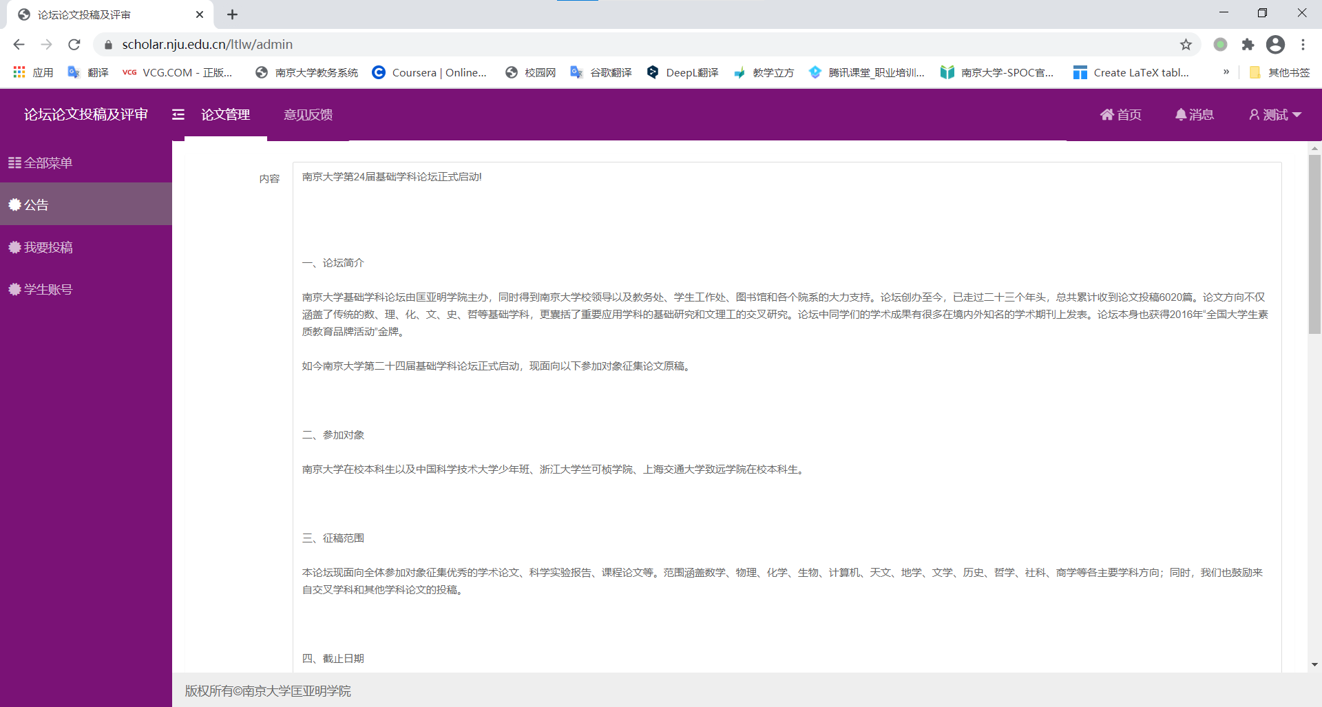 (4)点击“论坛论文投稿及评审管理系统”