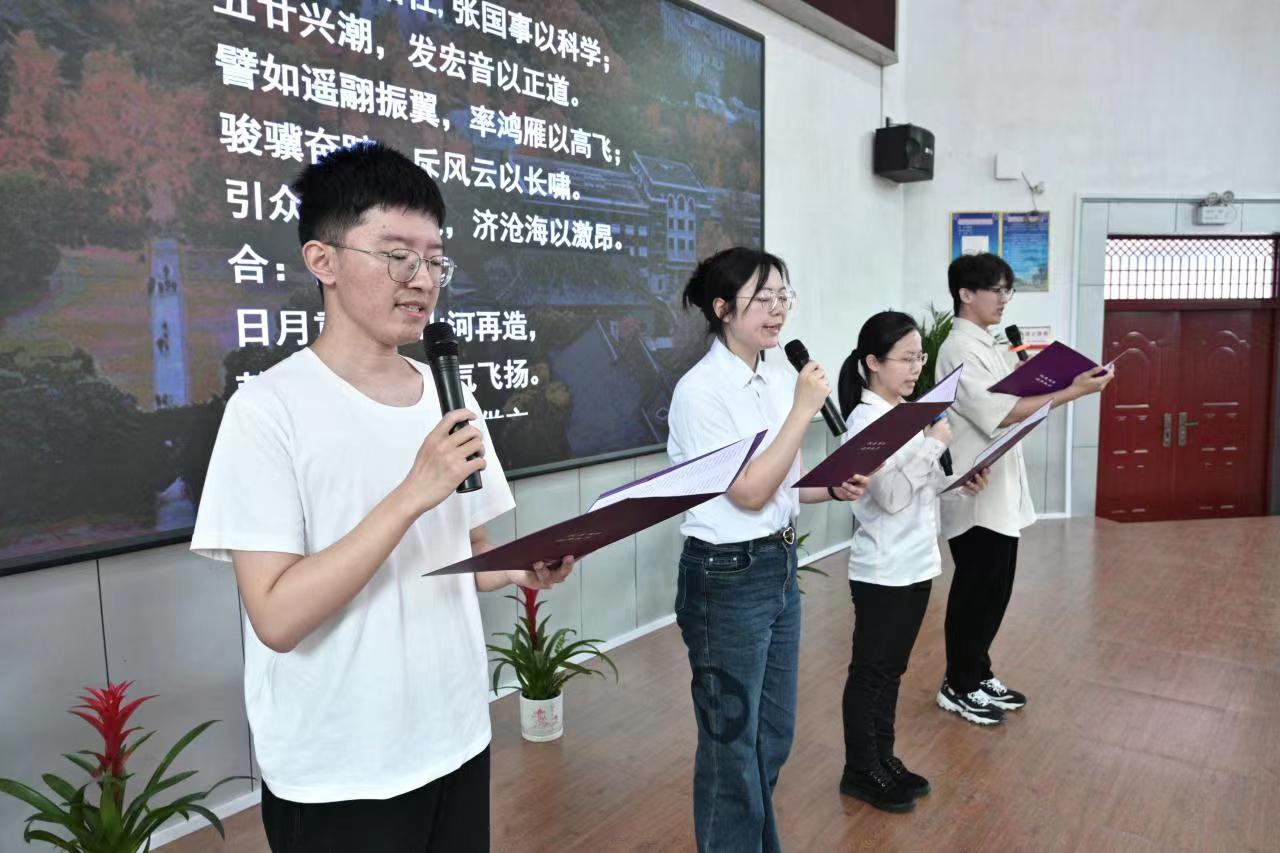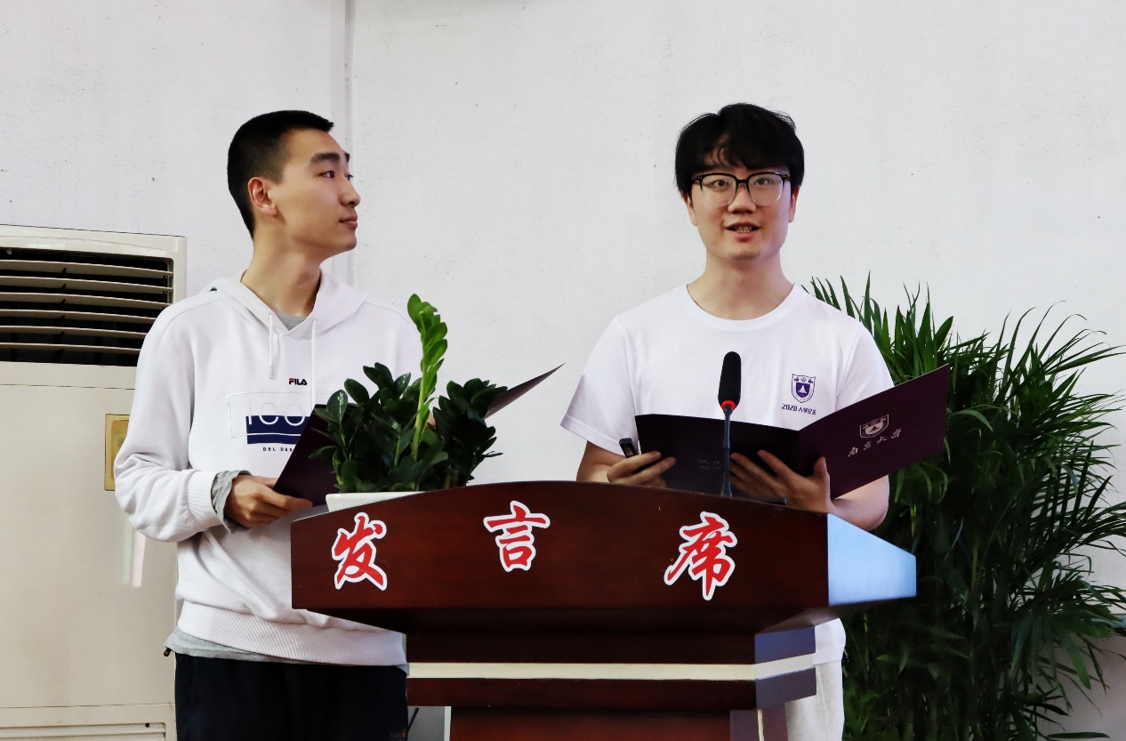 麻豆视频 学生党支部成员为大家带来了大气磅礴的诗歌朗诵《南大赋》,带我们回顾了南大百年校史和著名人物,从世道沧桑、时局乍裂中走向芬芳桃李、锦绣山河,南大师生如骏骥奋蹄,励学不怠,“汇百科而两仪泰,求真理而万象明”。