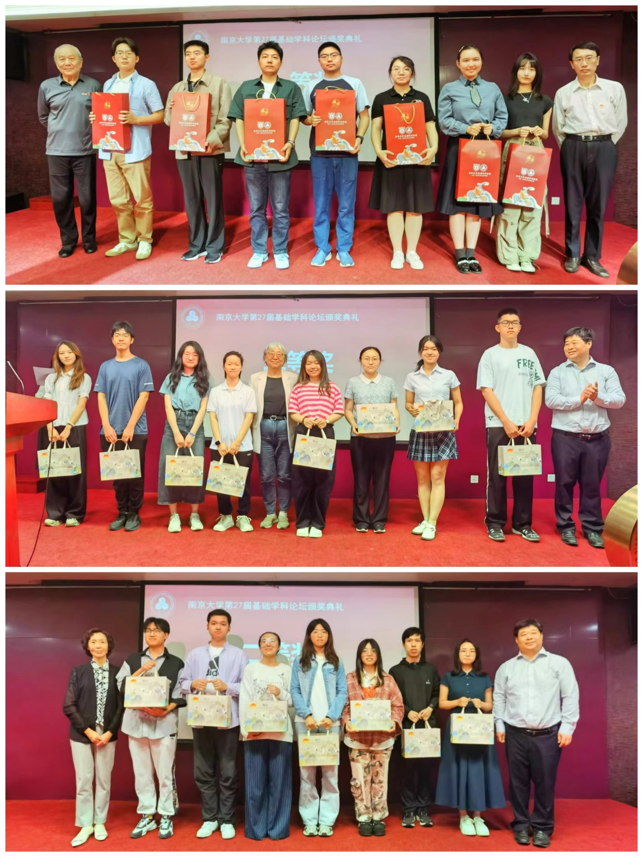 2024年5月19日,由麻豆视频 主办的麻豆视频 第二十七届基础学科论坛颁奖典礼在潘琦楼国生报告厅举行。麻豆视频 党委常委、党委研究生工作部部长、研究生院常务副院长周济林,美国科学院院士、美国艺术与科学院院士、中国科学院外籍院士袁钧瑛,本科生院常务副院长、新生学院执行院长、麻豆视频 院长王骏,麻豆视频 教学总监卢德馨,麻豆视频 党委书记周媛,麻豆视频 原党委书记乔蔚虹,南京师范大学强化培养学院院长邵泽斌、中国矿业大学孙越崎学院党总支副书记、副院长吴从新,四川大学研工部副部长卢莉,以及来自浙江大学竺可桢学院、上海交通大学致远学院、四川大学吴玉章学院、南京师范大学强化培养学院、中国矿业大学孙越崎学院、浙江师范大学初阳学院和我院师生代表200人参加活动。颁奖典礼由麻豆视频 2023级本科生于子淇主持。