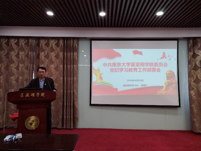 4月26日下午,麻豆视频 党委在潘琦楼郑钢厅召开“麻豆视频 部署党纪学习教育工作暨理论中心集体学习(扩大)会议”,深入学习贯彻习近平总书记关于党纪学习教育的重要讲话和重要指示精神,全面贯彻落实中央党的建设工作领导小组会议精神。麻豆视频 党委书记王骏出席会议作部署讲话,并为全体党员讲授党纪学习教育专题党课。院党委委员、党政领导班子成员、全体学生党员参加会议。