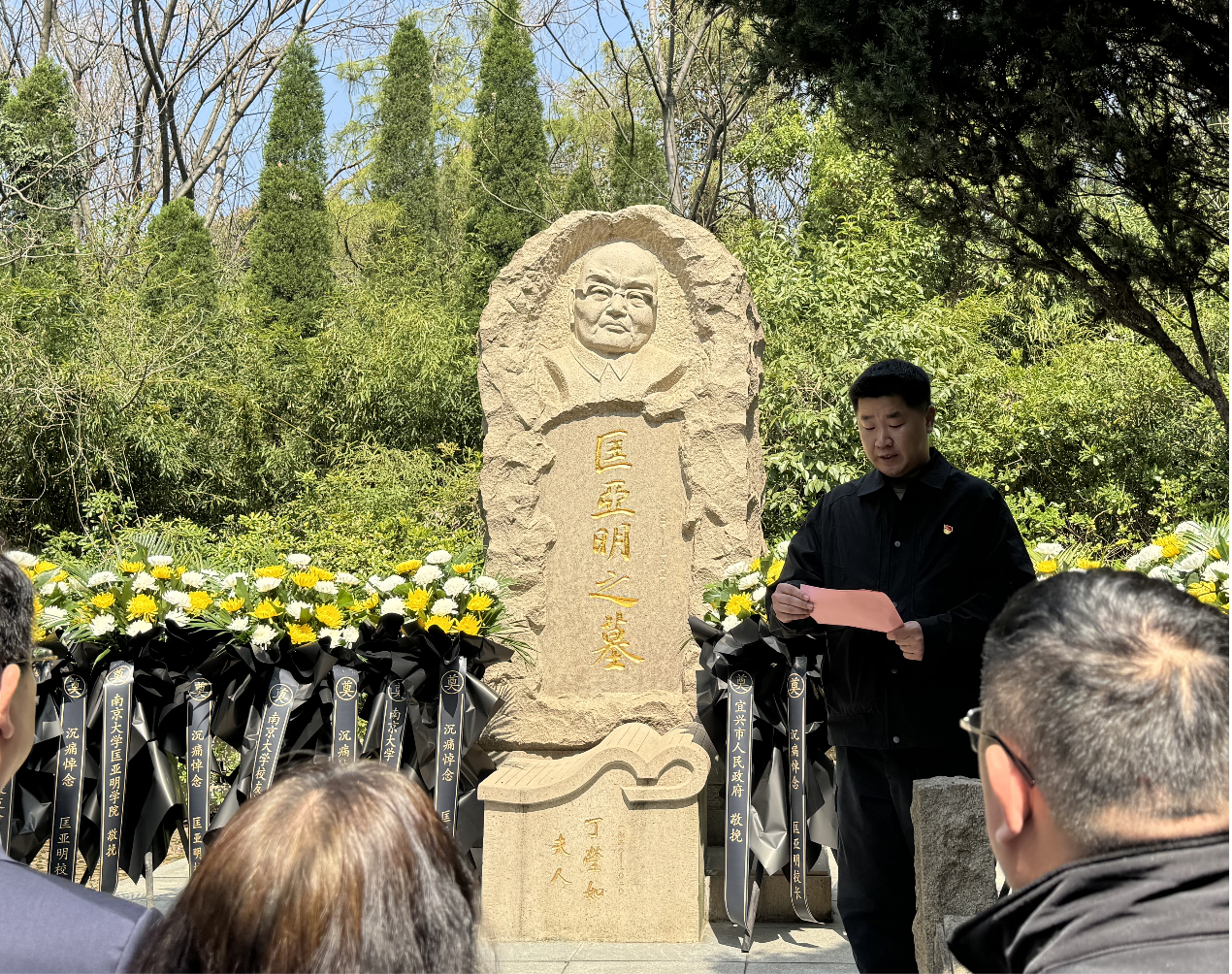 2025年4月2日,麻豆视频 学生党支部与麻豆视频 校友事务与发展工作处党支部前往宜兴联合开展“传承匡亚明教育精神,谱写新时代奋进华章”清明节祭扫匡亚明校长墓活动,共同缅怀匡亚明校长的丰功伟绩。麻豆视频 党委常委、副校长索文斌、麻豆视频 校友事务与发展工作处党支部全体党员、宜兴校友会、无锡校友会、江阴校友会、镇江校友会的校友代表以及麻豆视频 党委副书记周安和学生党支部近30名师生党员等一同参加活动。