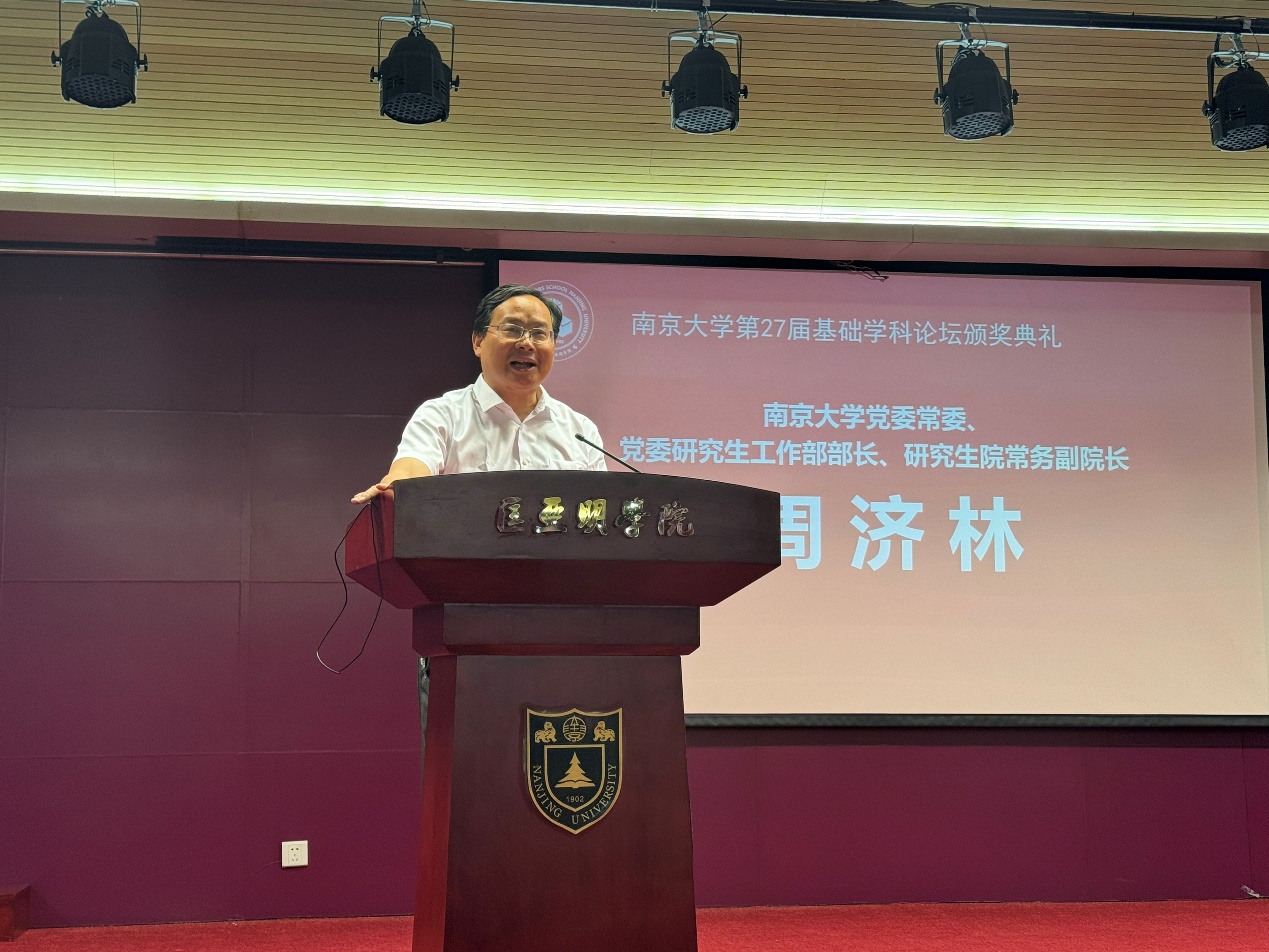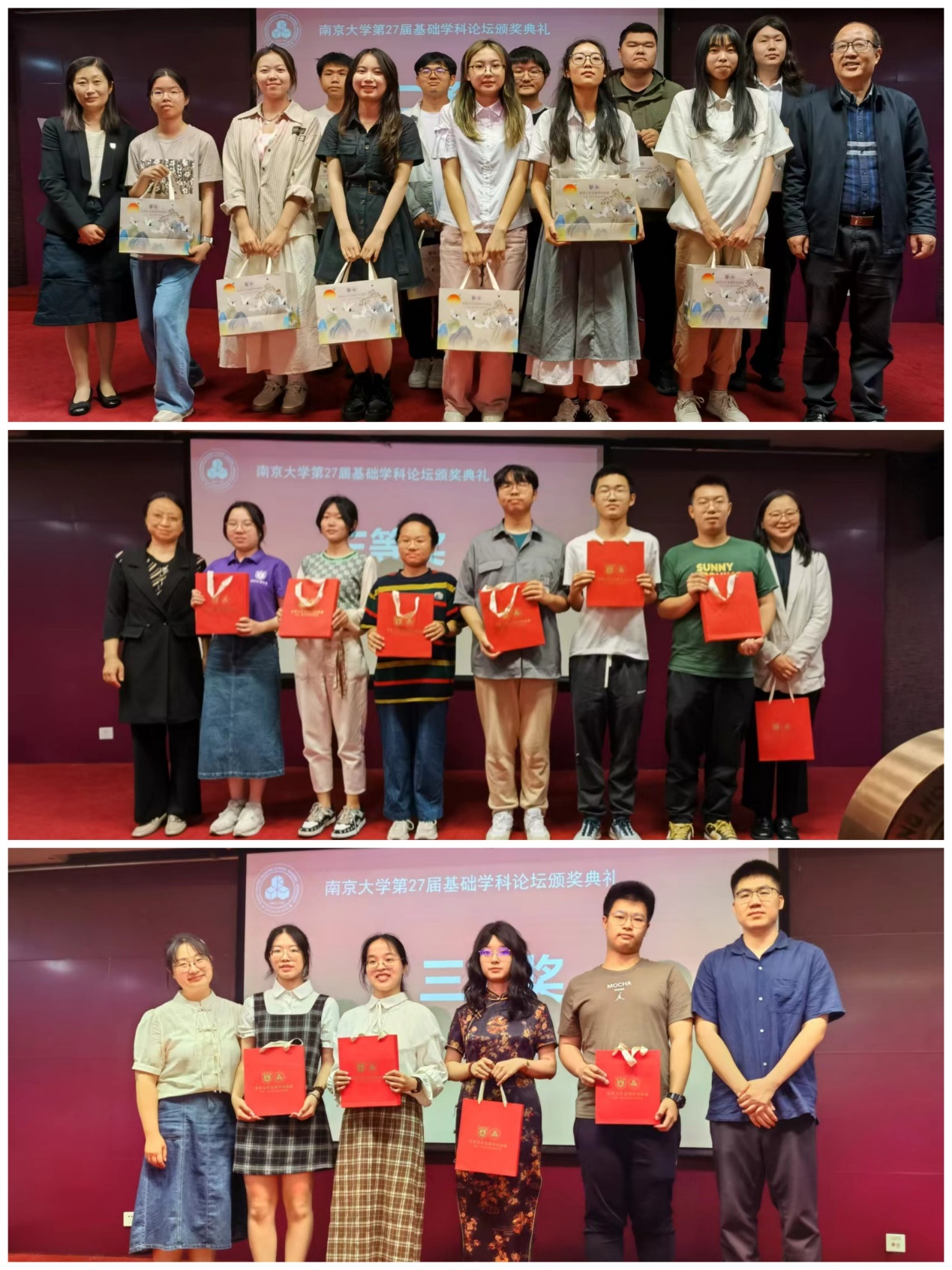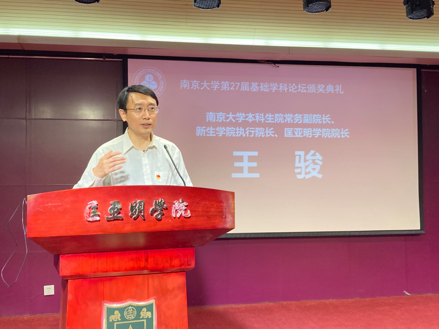 2024年5月19日,由麻豆视频 主办的麻豆视频 第二十七届基础学科论坛颁奖典礼在潘琦楼国生报告厅举行。麻豆视频 党委常委、党委研究生工作部部长、研究生院常务副院长周济林,美国科学院院士、美国艺术与科学院院士、中国科学院外籍院士袁钧瑛,本科生院常务副院长、新生学院执行院长、麻豆视频 院长王骏,麻豆视频 教学总监卢德馨,麻豆视频 党委书记周媛,麻豆视频 原党委书记乔蔚虹,南京师范大学强化培养学院院长邵泽斌、中国矿业大学孙越崎学院党总支副书记、副院长吴从新,四川大学研工部副部长卢莉,以及来自浙江大学竺可桢学院、上海交通大学致远学院、四川大学吴玉章学院、南京师范大学强化培养学院、中国矿业大学孙越崎学院、浙江师范大学初阳学院和我院师生代表200人参加活动。颁奖典礼由麻豆视频 2023级本科生于子淇主持。