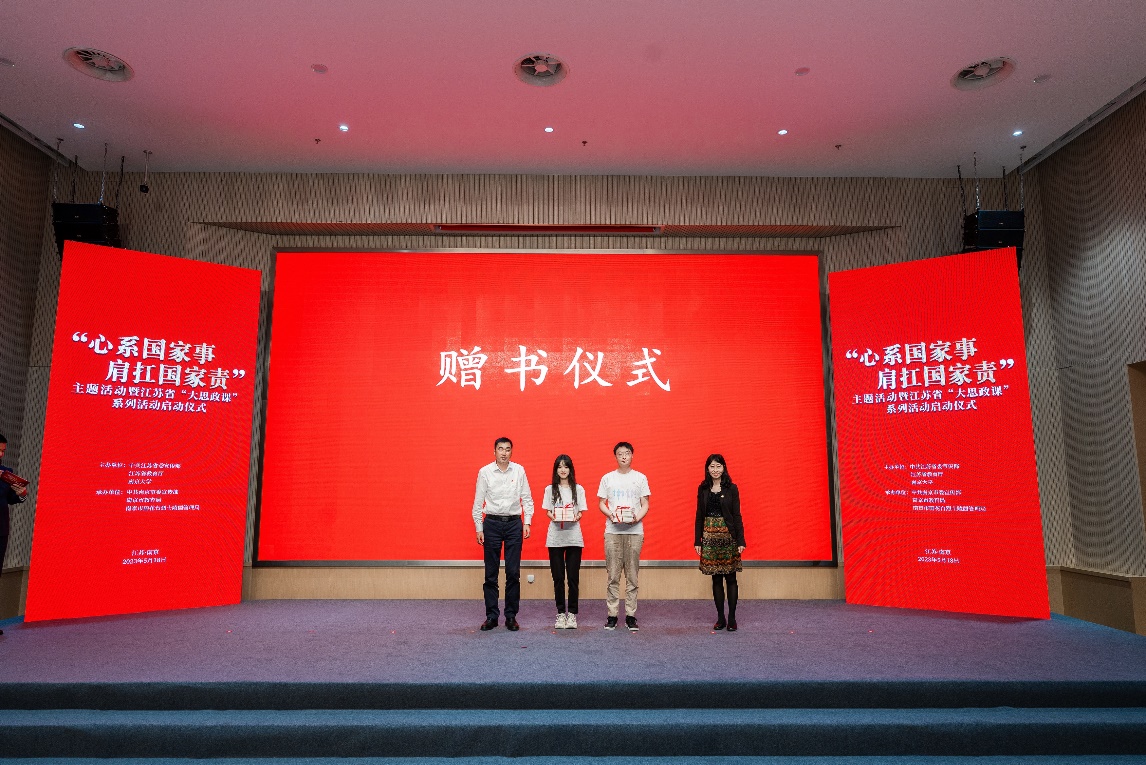 中共南京市委宣传部副部长、市文明办主任经地生和南京市教育局宣传与德育处处长完进向麻豆视频 学生代表赠送“信仰的力量”系列丛书,期待青年学子在书籍中了解英烈事迹,感悟英烈精神,自觉当好新时代雨花英烈事迹与精神的传承人。