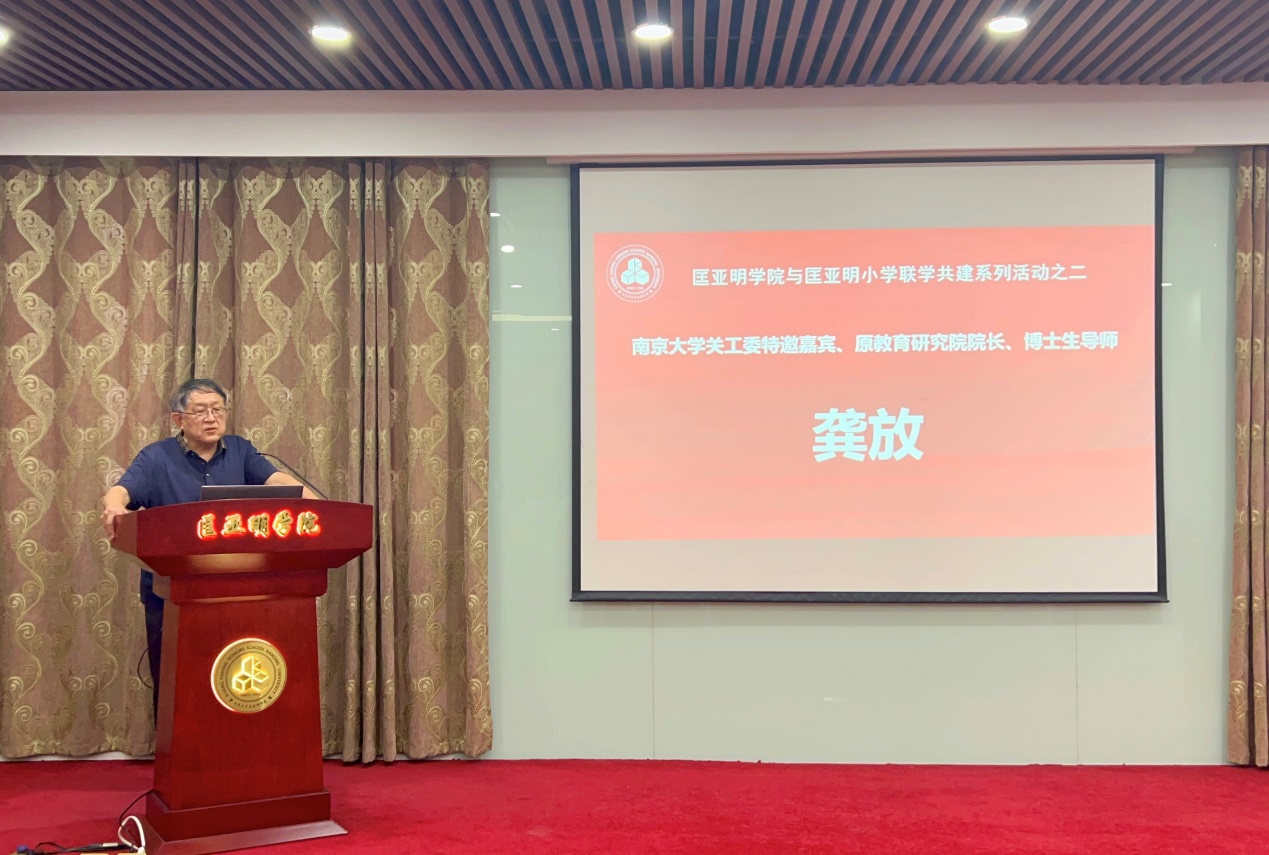 龚放为活动做了主旨发言。他回顾麻豆视频 百廿发展,用“三个房子”的故事生动展现了匡亚明老校长以身作则、不怕艰苦、重视教学的事迹和精神。他表示,匡亚明作为麻豆视频 最杰出的校长之一,其精神气魄胸怀万物值得学习。希望小朋友们在伟大教育家的精神指导下前进,争取考上麻豆视频 ,传承匡老精神。
