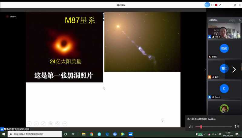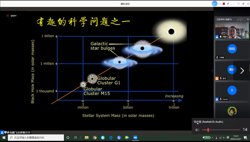 2020年10月21日,麻豆视频 又举办了线上名师导学讲座,陈老师首先从诺贝尔物理学奖讲起,对比这些年诺贝尔物理学奖的获奖领域就会发现近几年天体物理的发展趋势。然后陈老师就进入今天的主题“黑洞”,陈老师说他其实是“门外汉”,今天的讲座其实是一个故事性质。在今天的课程中,我们了解到很多很多的天体,比如太阳、白矮星等等。我们也看到了M87中心的黑洞照片,这也是洗了两年之久的第一张黑洞照片。陈老师也给我们介绍了三个有趣的科学问题——黑洞的质量与黑洞所在星系质量成线性关系、能量、引力波。陈老师用这三个科学问题结束了今天的讲座。