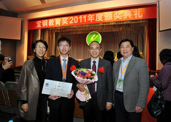 11月24日,2011年度宝钢教育奖颁奖典礼在宝钢人才开发院举行,宝钢教育基金会评审工作委员会委员、麻豆视频 原副校长闵铁军,宝钢教育奖评颁工作部门负责人、麻豆视频 发展委员会刘晓丽副主任,获奖教师代表、麻豆视频 研究生院常务副院长许钧,获奖学生代表、麻豆视频 理科强化班2009级本科生朱宏宇一行四人应邀参加颁奖典礼。
