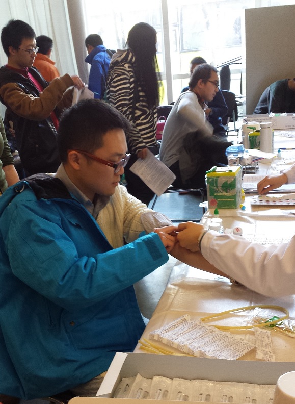 我校和南京红十字血液中心共同组织的2014年无偿献血活动在仙林校区的大学生活动中心火热展开。我院团委副书记、辅导员唐健老师以及16名学生参加了无偿献血,他们用自己的实际行动谱写了新时代高校师生爱的篇章。