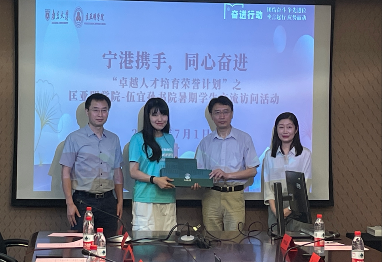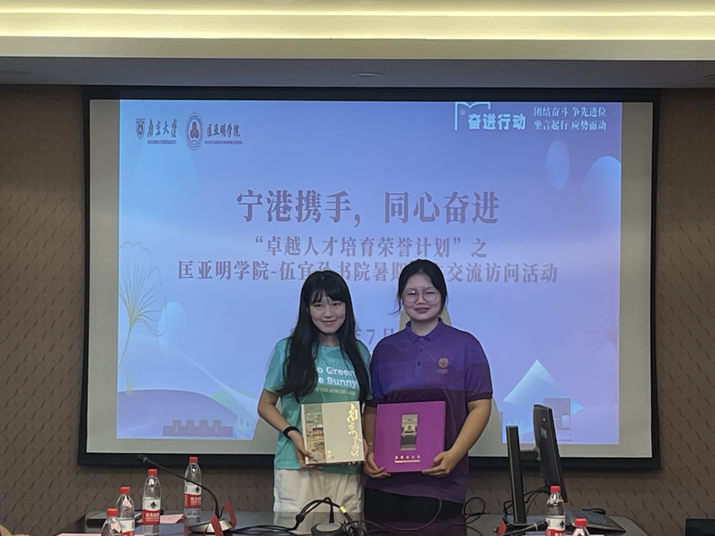在为期一周的活动中,匡院与伍宜孙书院师生走访了麻豆视频 仙林校区左涤江天文台、生科院标本馆、地科院,体验了科创氛围和学术文化,也参观了南大仙林校区校史馆以及鼓楼校区北大楼、二源璧等标志性建筑。此外,师生们还参观了中山陵、明城墙、阅江楼、南京博物院和侵华日军南京大屠杀遇难同胞纪念馆。在闭幕式暨学习成果汇报会上,来自两院的学生就《两地书院文化比较》《在古董铺子里畅游—我们在南京的所见所闻》等题目进行了分组汇报。潘江鹏教授在发言中感谢大家的共同努力,特别是匡院师生的热情接待和精心安排让这次交流活动获得了圆满成功,也期待未来有更多这样的机会,促进两校间的深入交流与合作。周媛在总结讲话中再次对此次活动的成功举办表示祝贺,她希望两院师生的互访交流能够更加深入持久,为共同推动拔尖创新人才的培养、弘扬中华优秀传统文化做出更大的努力。