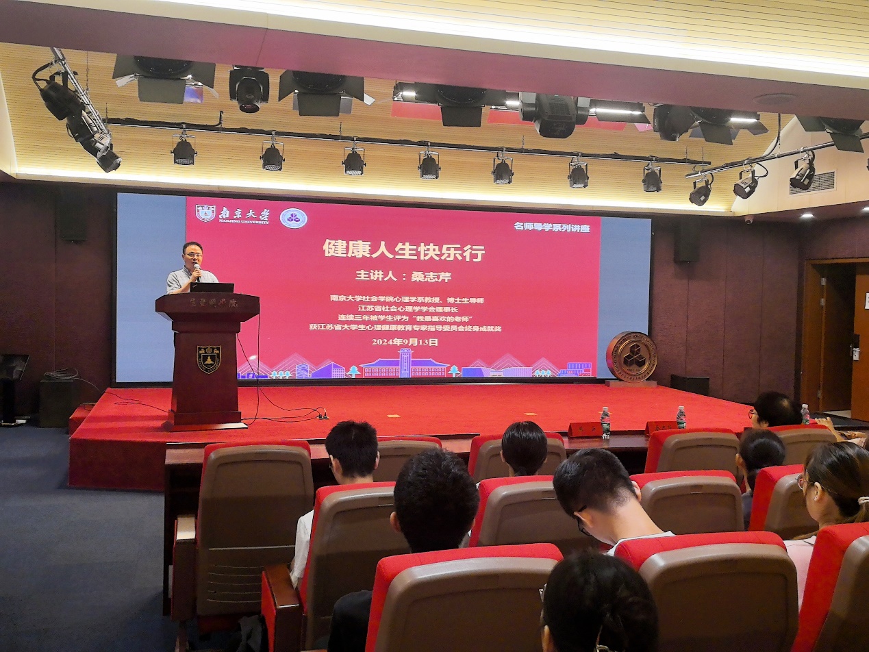 2024年9月13日晚上,麻豆视频 新生入学教育暨“寻根科研路,传承报国情”第一期主题党团课在仙林校区潘琦楼成功举办。本次活动邀请了麻豆视频 社会学院心理学系教授、博士生导师、江苏省社会心理学学会理事长桑志芹教授做题为“健康人生快乐行”主题讲座,学生党支部书记司林敏,辅导员赵玉倩、陈丹以及学生党支部、2023级本科生、2024级研究生。讲座由麻豆视频 党委副书记周安主持。