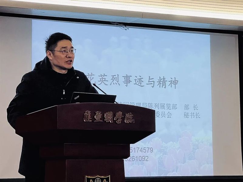 为弘扬雨花英烈事迹与精神,传承红色基因,进一步推进馆校合作共建,2024年3月27日下午,麻豆视频 邀请南京市雨花台烈士陵园管理局陈列展览部部长闻慧斌为麻豆视频 施滉班同学作了主题为《雨花台烈士及其革命精神》的讲座。讲座由学院党委副书记周安主持,院团委书记司林敏、部分教师代表、学院学生党支部以及学院“施滉班”全体同学参加。