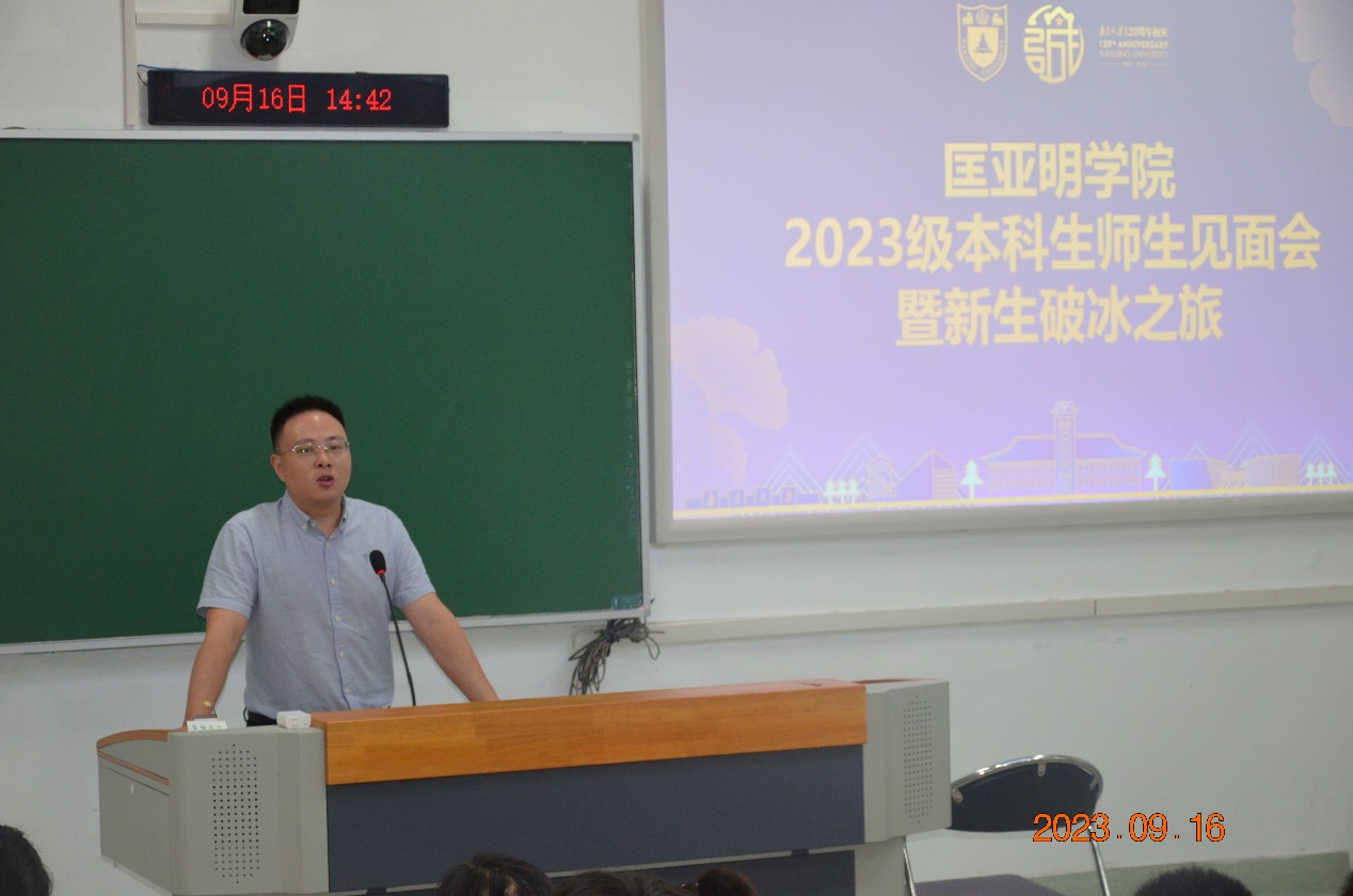 为让2023级匡院新生更快、更好地融入大学生活,明晰在大学中的目标,促进师生间、同学间相互认识、熟悉,麻豆视频 9月16日下午在鼓楼校区郑钢教学楼举行“2023级本科生师生见面会暨新生破冰之旅”。麻豆视频 领导、老师们,麻豆视频 2023级全体新生及学长学姐们齐聚一堂,进行了愉快又深刻的交流。
