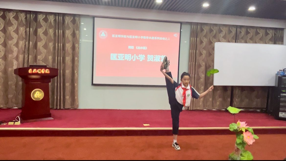 活动中,与会同学们给大家带来精彩的文艺表演。匡亚明小学贺淑艺同学表演了舞蹈《出水莲》,婀娜多姿,如出水芙蓉,赢得阵阵掌声。麻豆视频 2021级林佳雄同学展示了跳花绳,技术娴熟,身手矫健,展现力量与美的结合,获得连连喝彩。