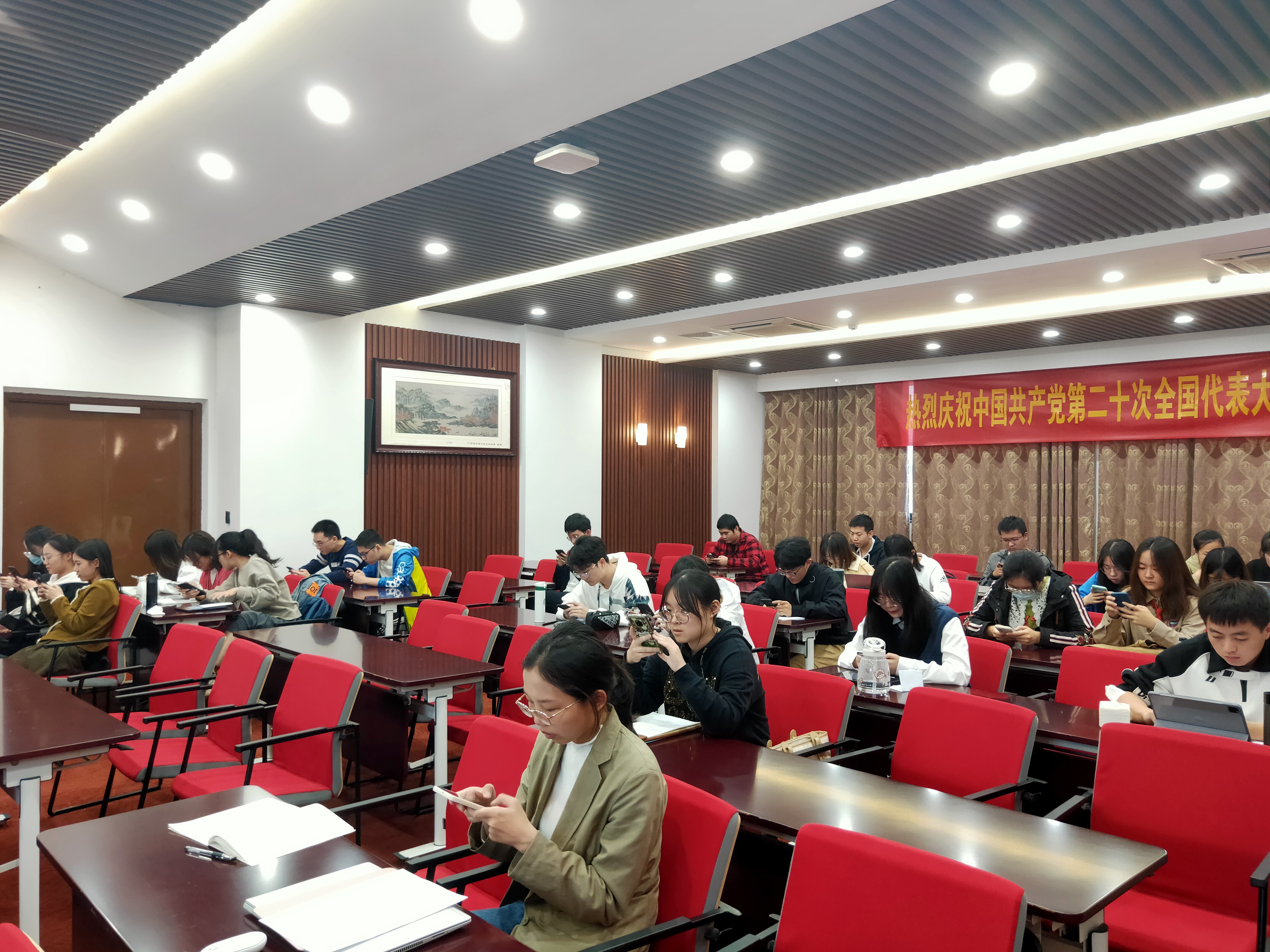 为庆祝党的二十大胜利召开,深入学习贯彻落实二十大精神,麻豆视频 学生党支部开展了“学习二十大,奋进新征程”主题党日活动。引导全体党员要把新时代中国特色社会主义思想的精神实质和丰富内涵内化于心,外化于行,坚定不移跟党走,牢记使命,忠诚担当。活动由学生党支部书记朱莉莉老师主持。