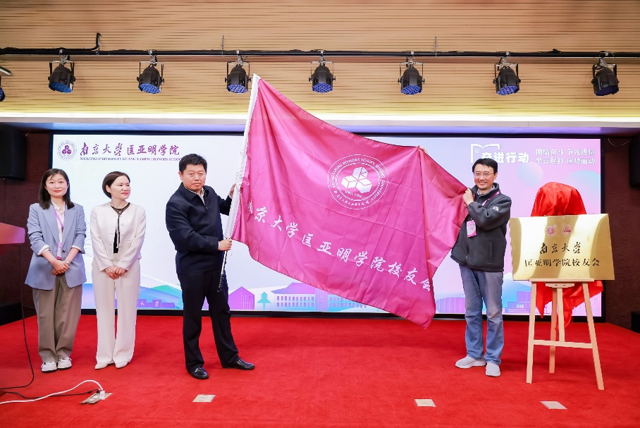 冯帆、王骏共同为麻豆视频 校友会会牌揭幕。